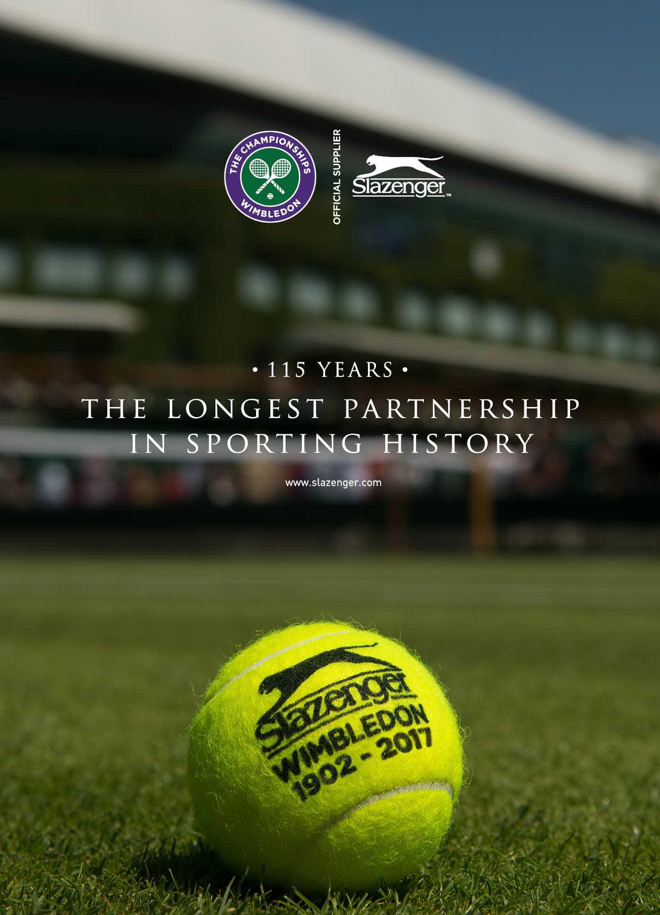 In 1902 Slazenger was appointed the official tennis ball supplier for Wimbledon, a partnership that is now in its 113th year and is the longest running sporting sponsorship in history. Slazenger tennis balls were first requested to be used at Wimbledon by champion tennis players. Slazenger since became the official Wimbledon tennis ball supplier in 1902. Eighty four years later, the yellow Slazenger balls were first introduced at Wimbledon.